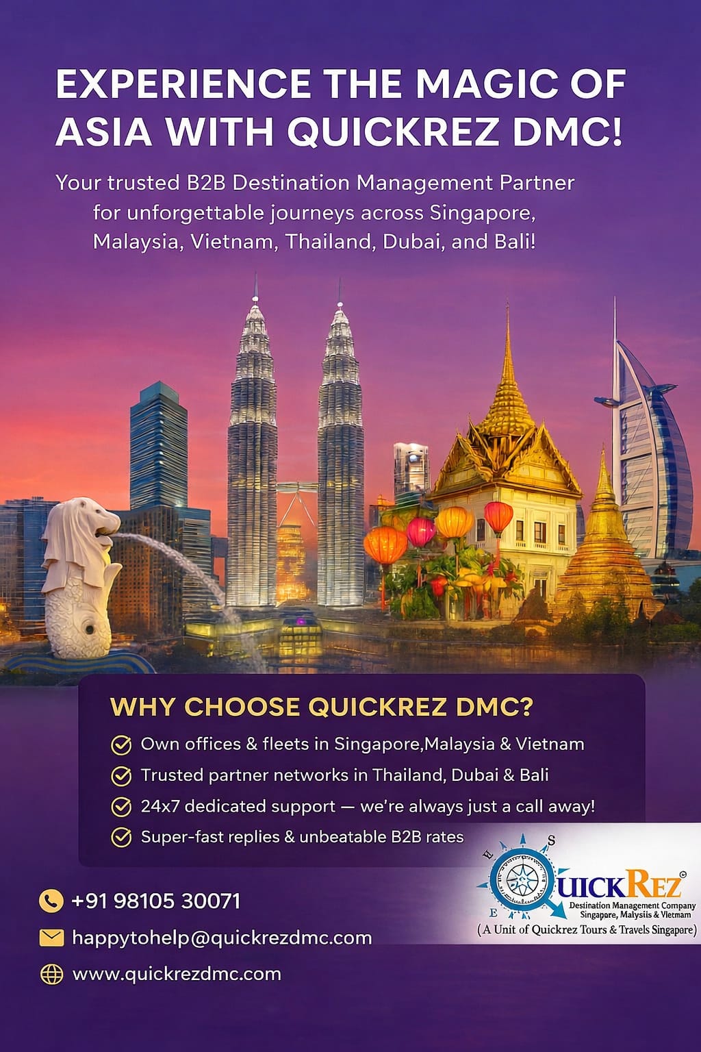 We are the premier Destination Management Company for Singapore, Malaysia and Vietnam. Specializing in B2B query management, we offer the best rates and seamless operations for our core destinations. Our team of professionals ensures every client requirement is met with excellence.